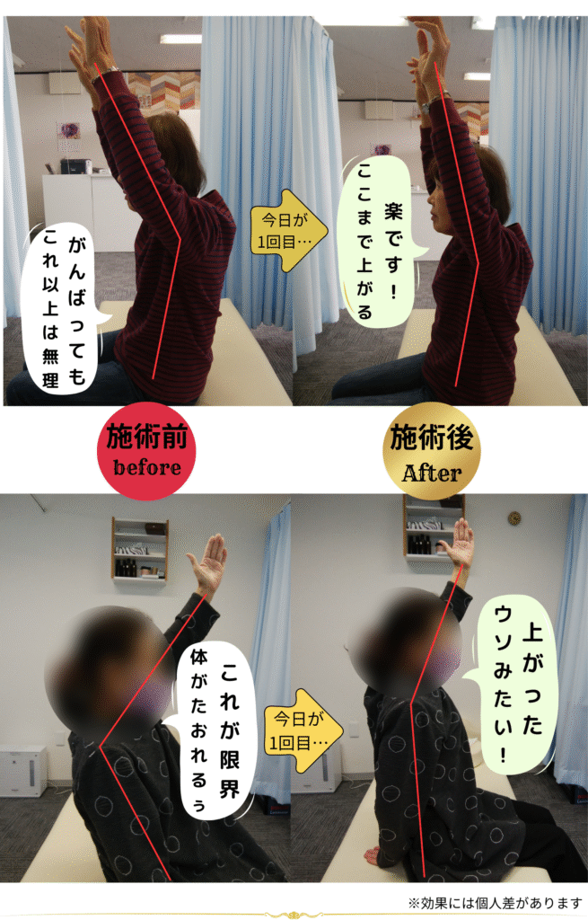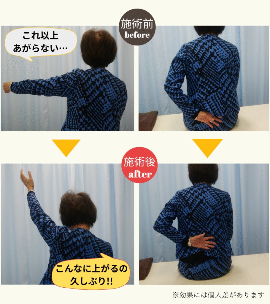 といった声をいただくことがあります。※施術の効果には個人差があります
