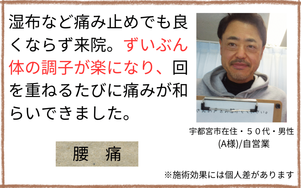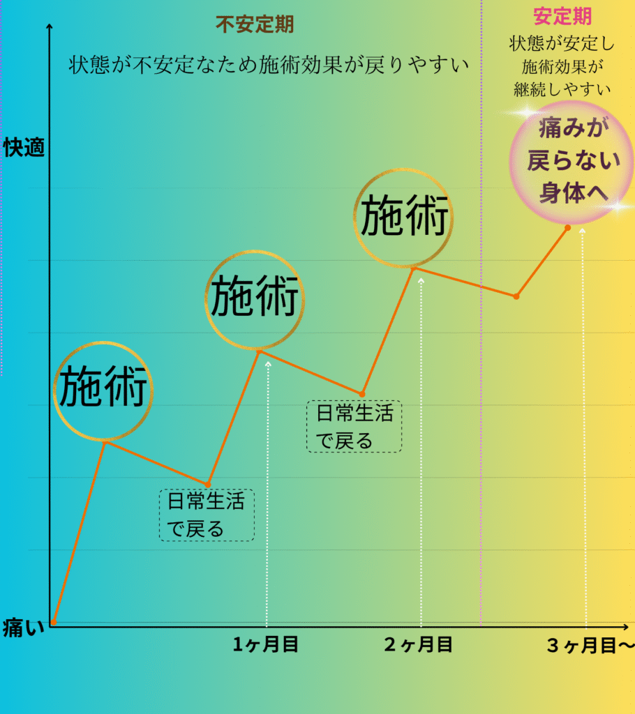 ・直後は楽になった気がするが、その場しのぎの施術が大半を占める |