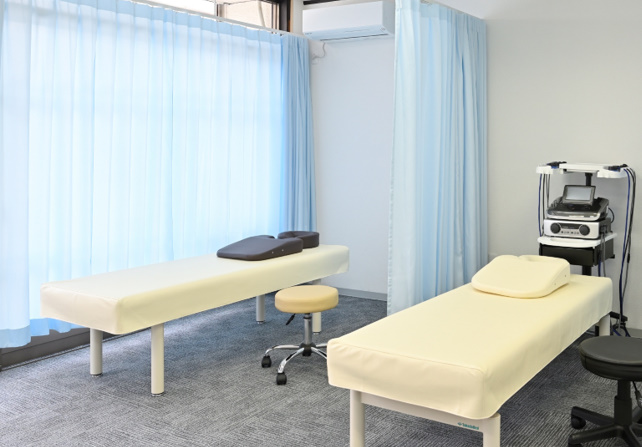 ・担当スタッフにより差がある傾向 ・さする様なマッサージと運動が主体 ・ホットパックや電気、牽引など電気治療器が多い |