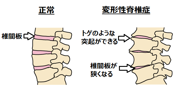 - 変形性脊椎症(へんけいせいせきついしょう):背骨がすり減ったり形が変わる状態。
