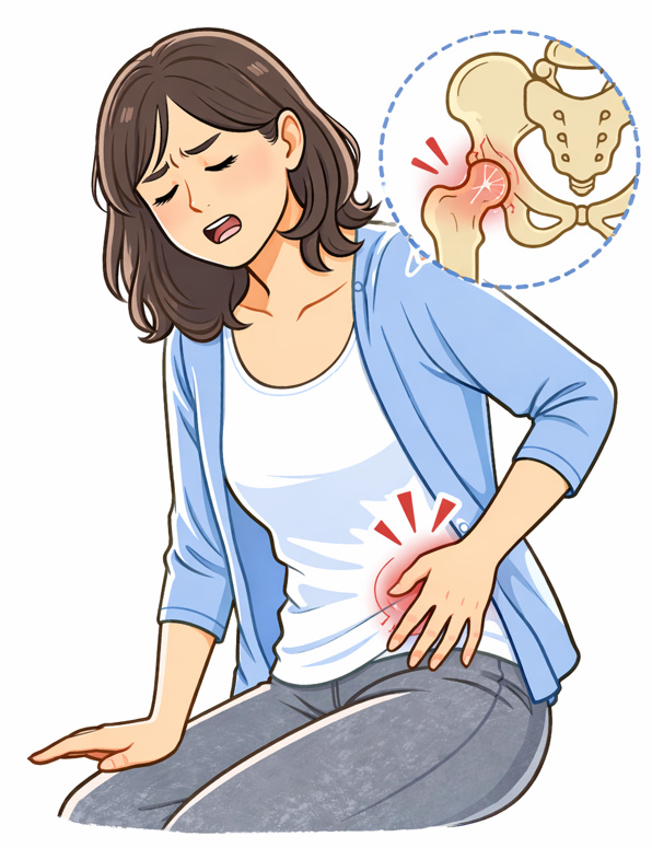 - 鼠径部を手でつかむように押さえたくなる仕草が自然に出ることがある。これは関節の中に負担が集まっているサインの一つと考えられています。