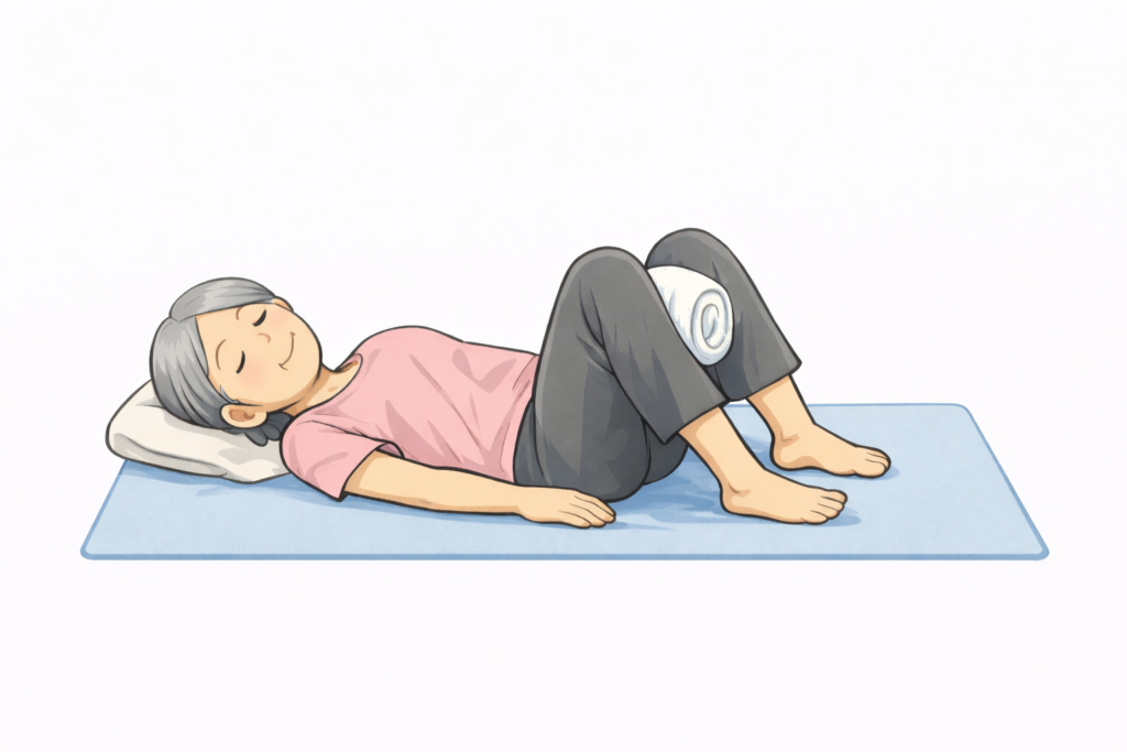 - 寝返りは腰をねじらず、膝をそろえて動かします。仙腸関節が過敏な時期は、上半身だけ先にひねる寝返りが一番きつく出やすいです。膝を軽く曲げ、膝と肩が同じ方向に向くように体ごと転がすと、骨盤のつなぎ目が引っぱられにくくなります。