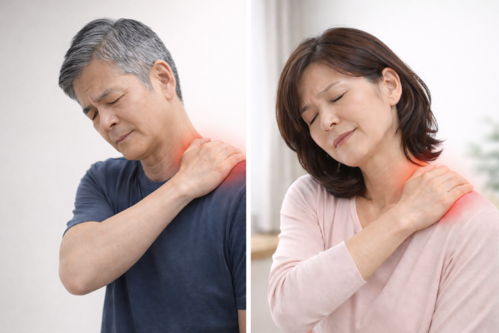 年齢による変化は影響しますが、それだけが原因ではありません。肩こり症は、長年の体の使い方が積み重なって起こることが多く、年齢に関係なく動きが変わると楽になるケースは多くあります。