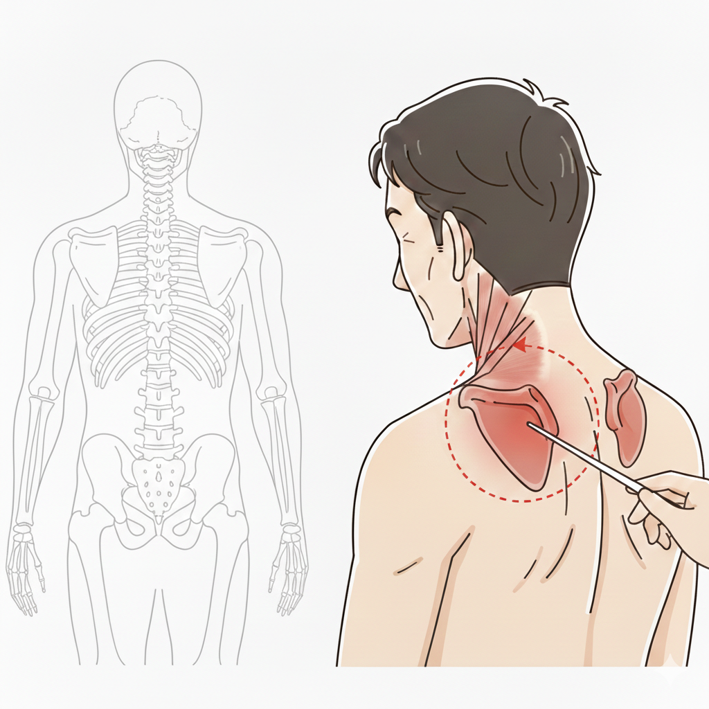 - 肩や首の筋肉では、緊張が一部に偏りやすく、触ると特定の場所だけが強く硬く感じられることがあります。